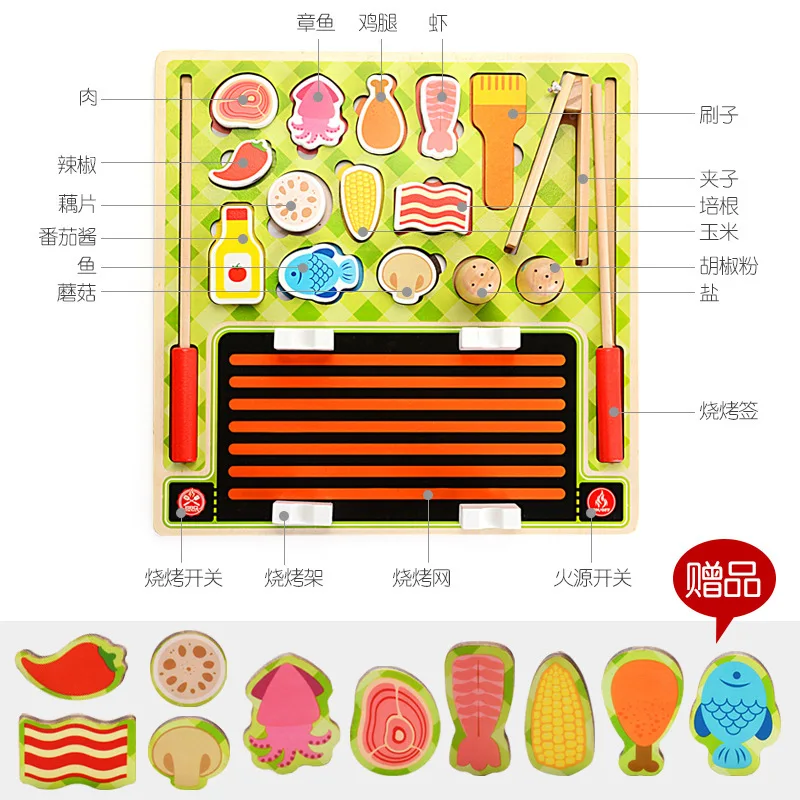 HOT Sale Wooden Puzzle Children Cut Fruit Toy GIRL'S Kitchen Cutting Boy Play House Slicer Barbecue Suit