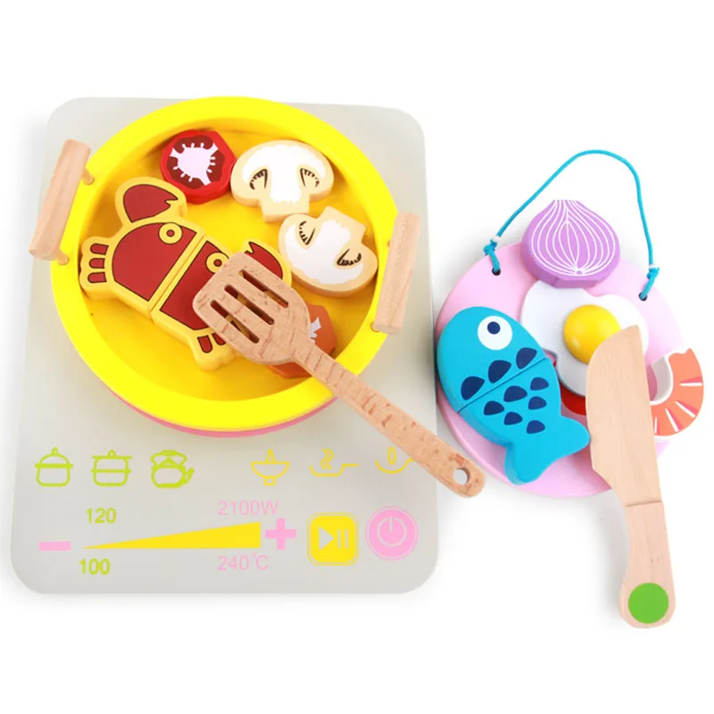 Best Play House Toys Wooden Kitchen Hot Pot Electromagnetic Furnace Toy Children Kitchen Toy